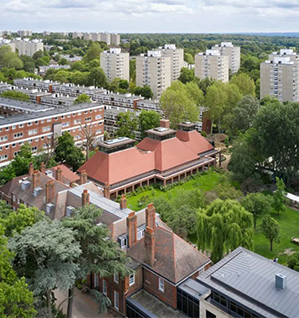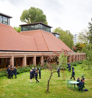 伊布斯托克学校坐落于伦敦西南里士满公园之端,由弗雷德里克皇后(维多利亚女王的女儿,普鲁士王储的妻子)于1896年开设,是一所走读制私立混校,伊布斯托克学校以18世纪德国教育家福禄贝尔(Friedrich Froebel)的教育思想为宗旨,致力于为各年龄阶段的学生营造包容的学习生活氛围,为学生提供多样化的支持与协助。学校餐厅的设计在2022年获得了英国国家建筑奖(RIBA National Awards)。